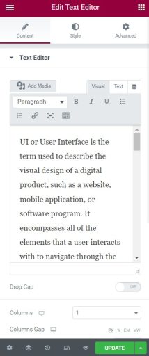 - Make the changes that you want to effect and then click the ‘Update’ button.